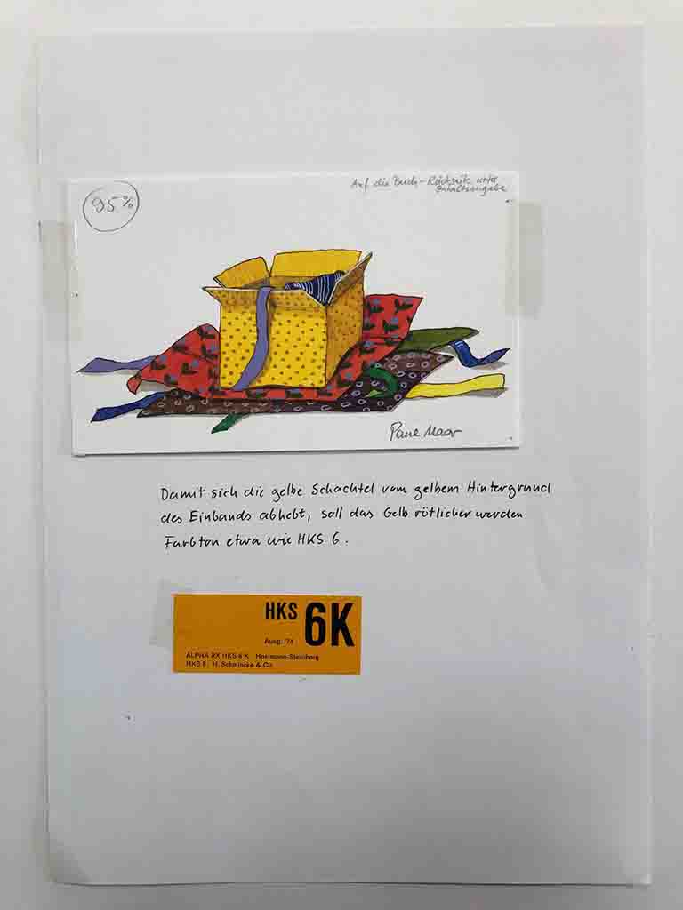 Mischtechnik auf Papier, auf DINA4 Blatt montiert, mit Notizen