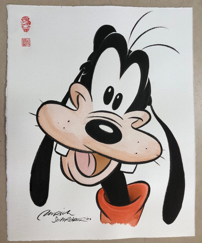 Japanische Reibetusche und Aquarell auf Karton, handsigniert