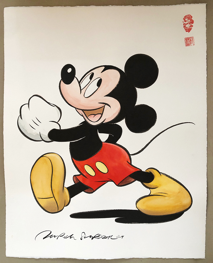 Japanische Reibetusche und Aquarell auf Karton, handsigniert